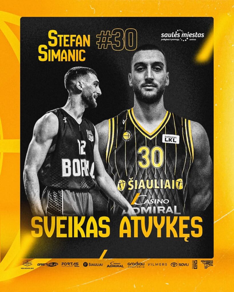 Iako je ovog ljeta izabran kao petnaesto pik u razvojnoj NBA ligi od strane Klivlenda, Stefan Simanić će karijeru nastaviti u Litvaniji. Mladi centar potpisao je ugovor sa ekipom Šiauliai BC koji sa klupe vodi nekadašnji as litvanske košarke Darius Songalija.